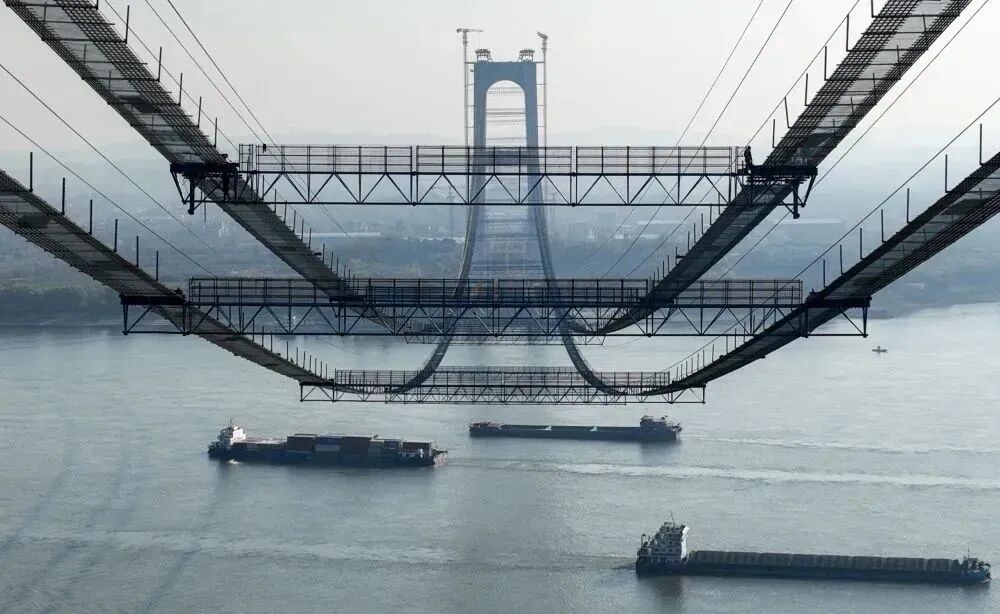 "桥"见巨力 | 总长12千米!天下最长猫道顺遂贯穿