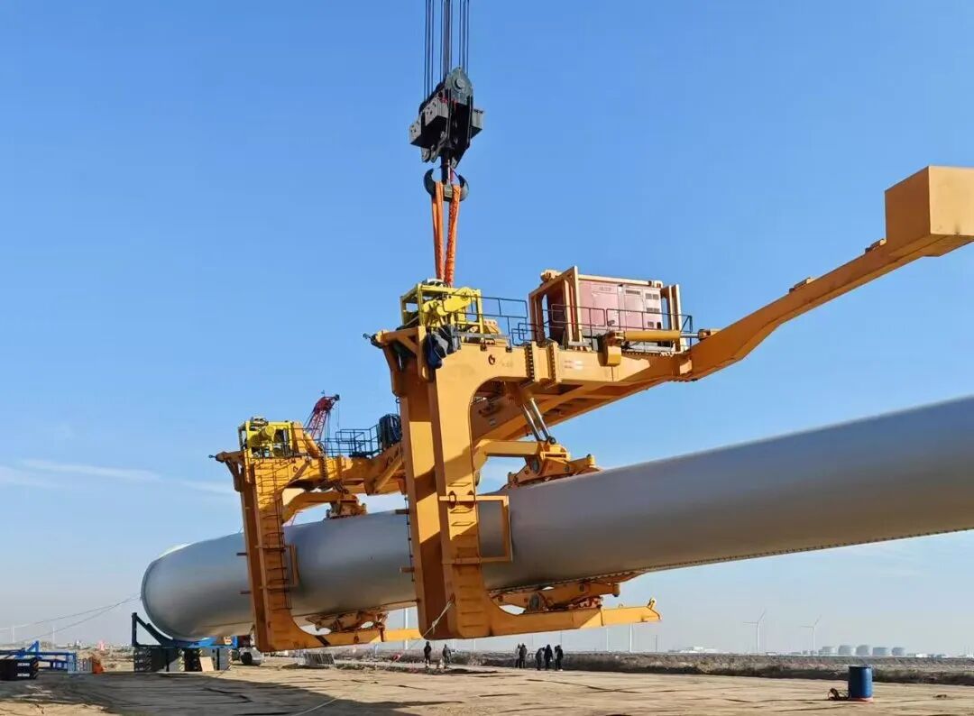 该吊(diao)(diao)具(ju)(ju)具(ju)(ju)有(you)壮(zhuang)大(da)(da)的(de)(de)顺应(ying)性和矫捷(jie)性。经由进程主吊(diao)(diao)臂(bei)及(ji)配重梁(liang)的(de)(de)奇妙摆动(dong),叶片(pian)可(ke)完(wan)成最大(da)(da)角度(du)的(de)(de)盘(pan)车(che)和变桨(jiang),此中盘(pan)车(che)角度(du)可(ke)达±35°,变桨(jiang)角度(du)可(ke)达±5° ,这一特征使(shi)得它能够(gou)或(huo)(huo)许顺应(ying)各(ge)类庞杂(za)的(de)(de)功课情况(kuang)和差别规格(ge)叶片(pian𒊎)的(de)(de)吊(diao)(diao)装(zhuang)(zhuang)须꧋(xu)要,通(tong)用性极强。同时,吊(diao)(diao)具(ju)(ju)自重轻(qing),却具(ju)(ju)有(you)高(gao)度(du)主动(dong)化,还具(ju)(ju)有(you)自盘(pan)车(che)功效,在吊(diao)(diao)装(zhuang)(zhuang)进程中能够(gou)或(huo)(huo)许疾速地(di)完(wan)成各(ge)类操纵,极大(da)(da)地(di)进步了功课效力,下(xia)降(jiang)了人力本钱(qian)和功课危险。