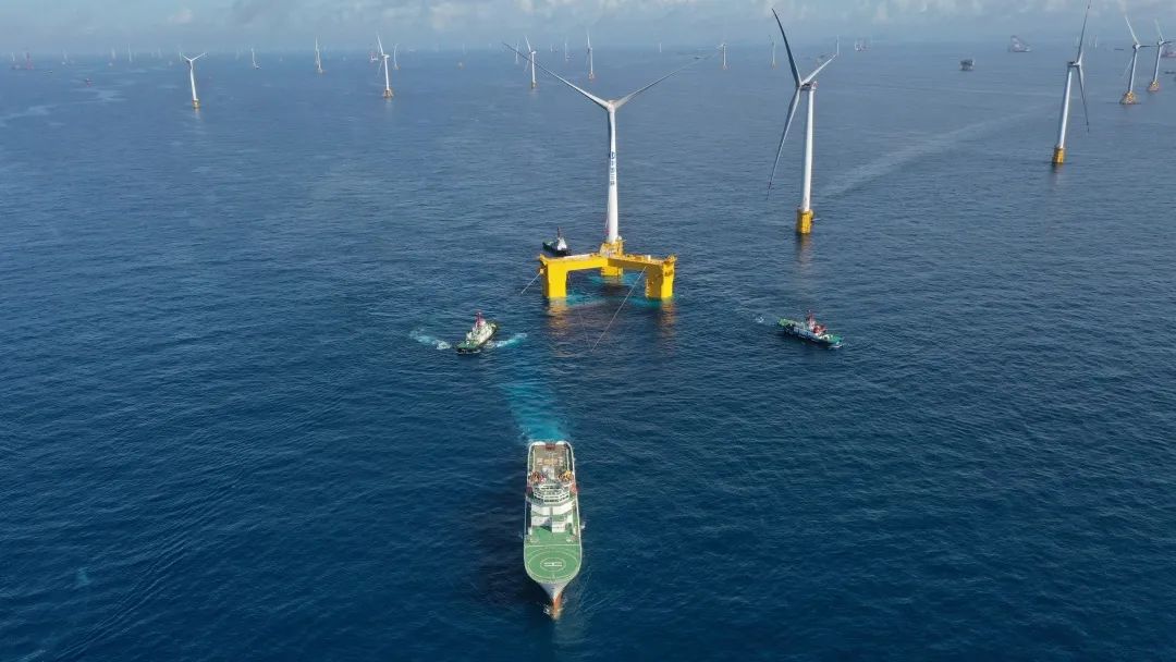 7月13日,中国首个漂泊式海上风电平台,搭载环球首台抗台风型漂泊式海上风电机组在广东阳江海疆胜利装配,标记着我国漂泊式海上风机装配获得零的冲破,为将来深远海风电范围化开辟奠基了杰出根本。