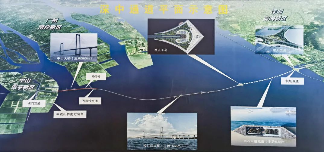 深中通道是集“桥、岛、隧、水下互通”为一体的天下级跨海集群工程,全长24千米。此中,桥梁工程长约17.2千米,其关头节制性工程为主跨1666米的孤立洋大桥与主跨580米的中山大桥。