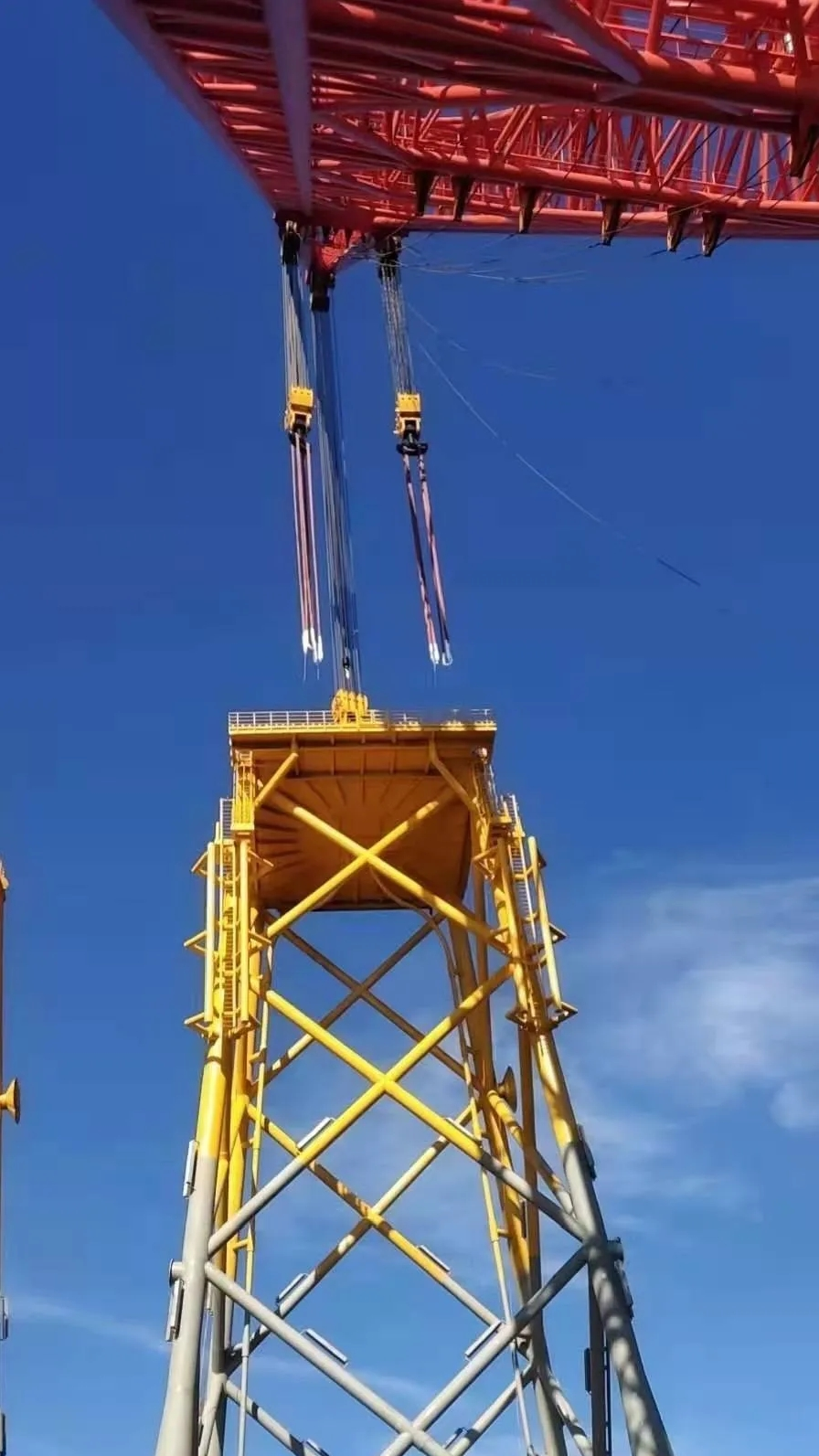 巨力索具为“秦航工2300”号供给起升、变幅、抛锚三大体系在内的全船钢丝绳配套,包含本次超千吨级吊装所用全套索具系列产物。此中为知足“秦航工2300”号亚洲第一吊高的施工须要,船舶工程师设想了超高的2300吨吊机主臂架,使主变幅钢丝绳长度必须知足主臂架设想请求,巨力索具名目团队按照设想计划连系出产工艺停止革新晋升,终究完成单根钢丝绳长度跨越10730米,毛重达215吨胜利托付利用,该钢丝绳胜利投入利用标记着我国钢丝绳财产又向前迈出一步,既彰显了巨力索具制作气力,也为我国在超长超重钢丝绳范畴成长画上浓墨重彩的一笔。