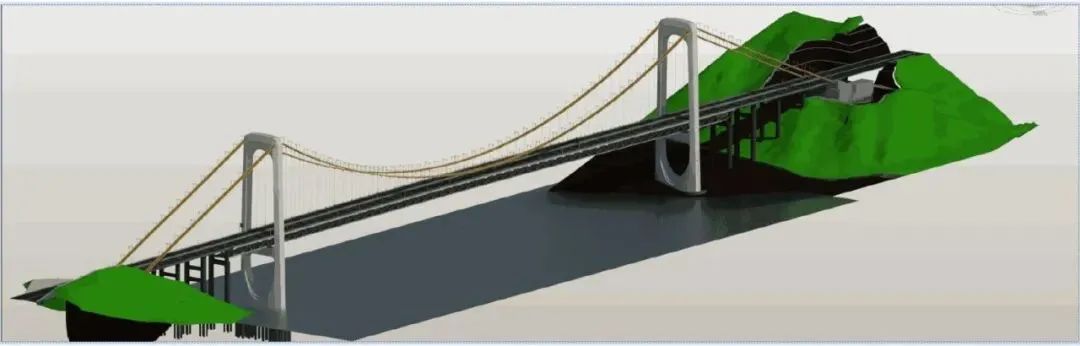 单孔悬垂双塔三跨不断钢桁梁悬索桥思路