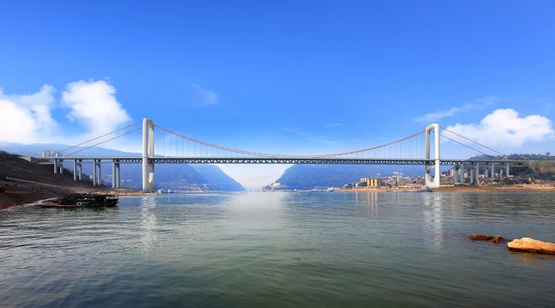 全国最明显跨距公轨二用悬索桥